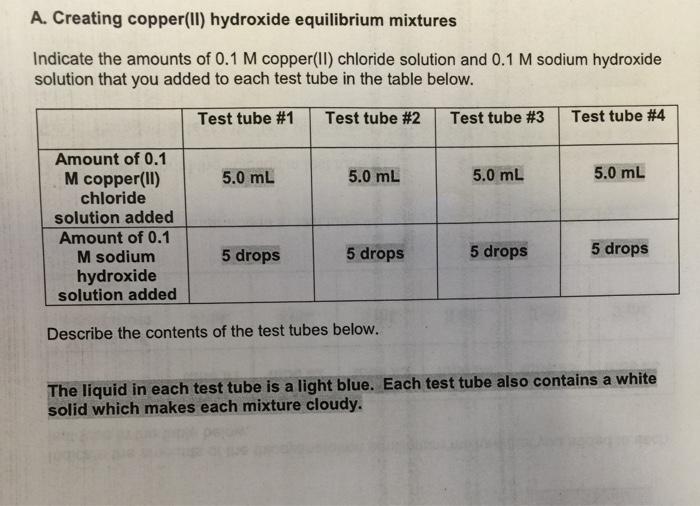 Solved A Creating Copper 11 Hydroxide Equilibrium Mixtures Chegg Com